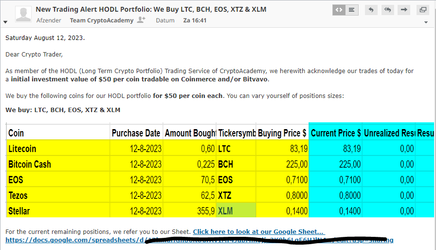 Hieronder zie je bijvoorbeeld de mail gericht op lange termijn maar je krijgt ook signalen voor korte termijn.