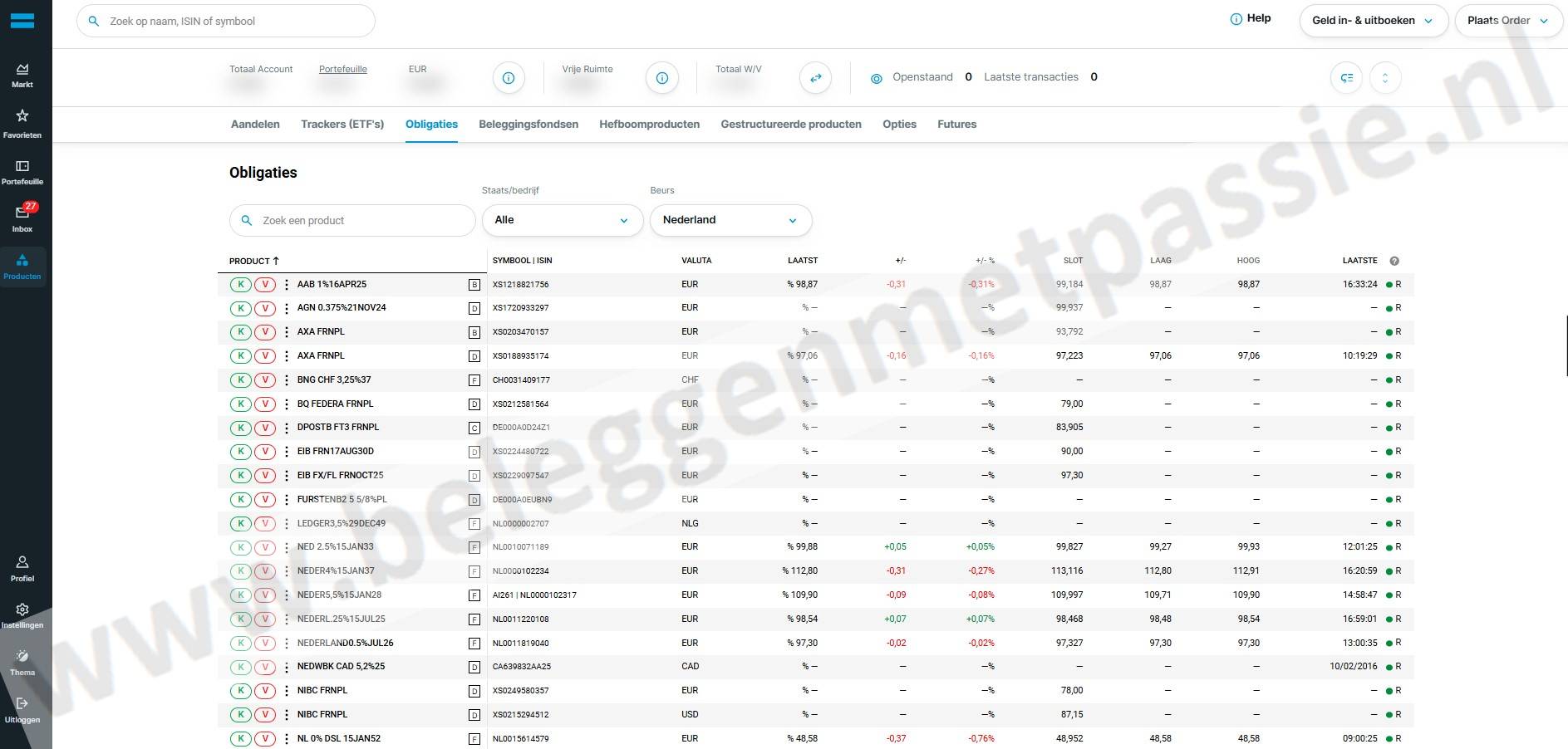Bovendien gaat het kopen van obligaties bij DEGIRO erg makkelijk. Je hebt de keus uit veel soorten obligaties, terwijl je niet al te veel risico loopt. Je draait een niet super hoog rendement, maar het lage risico is absoluut mooi meegenomen.