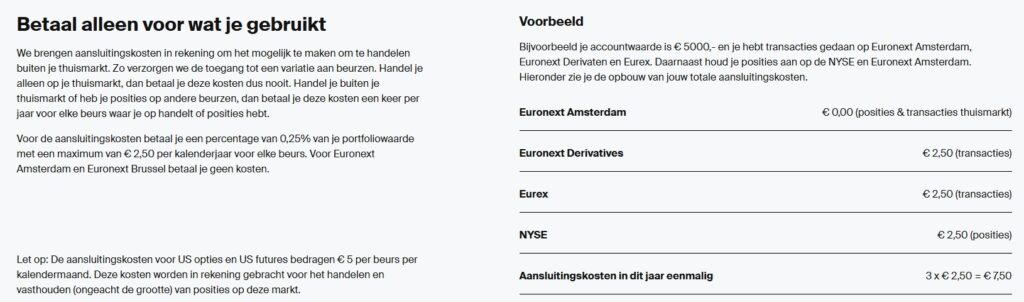 | Connectiekosten beurzen | €2,50 per beurs per jaar | Inbegrepen |