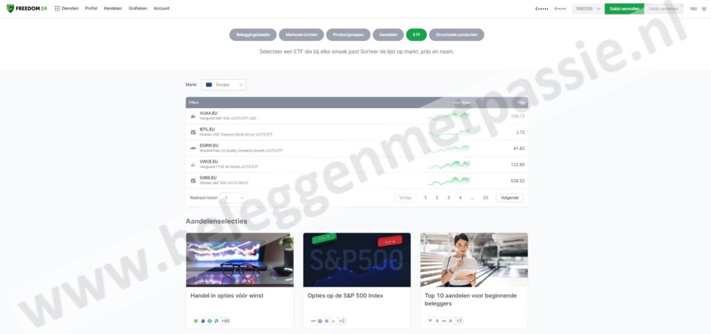 Freedom24 heeft ook een sterk aanbod met focus op Amerikaanse en Europese markten.