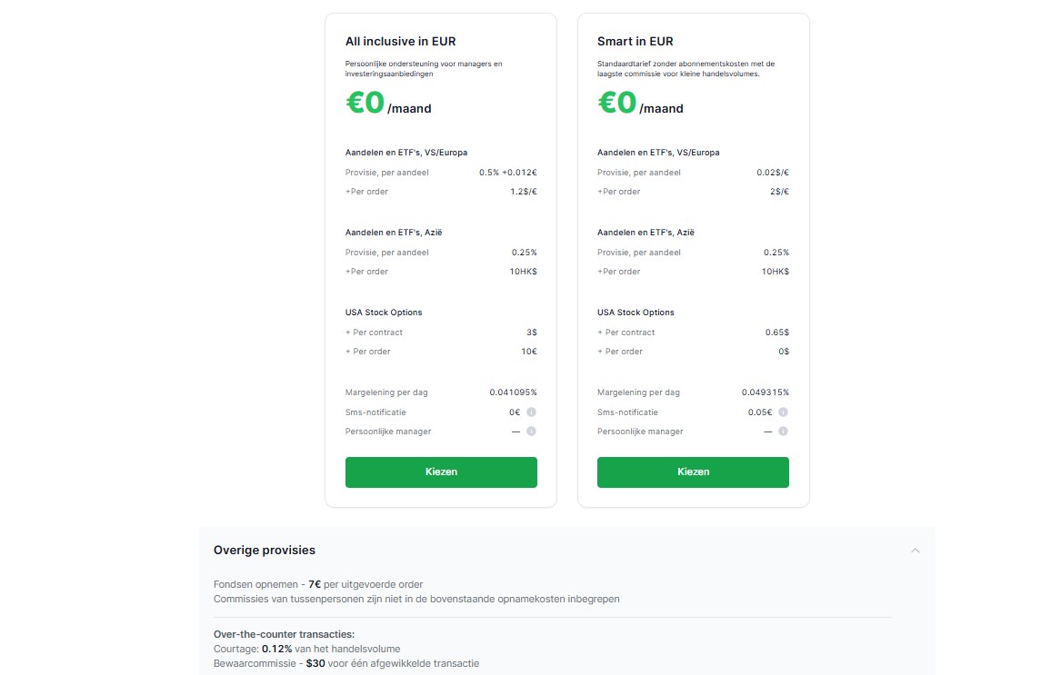 | Dividendverwerking | 1% (max €10) | 2% (min. €1) |