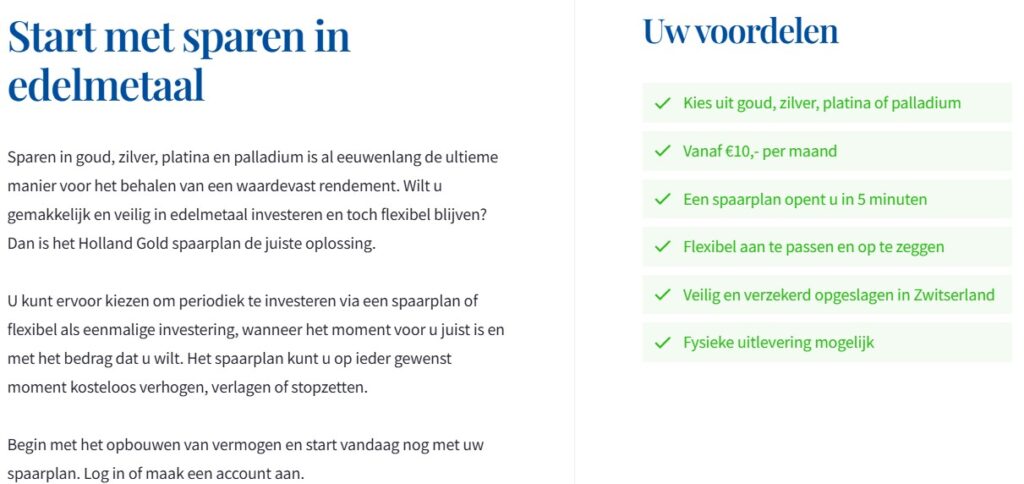 Diensten zoals GoldRepublic of Holland Gold maken dit makkelijker met hun spaarplannen vanaf €10 per maand.