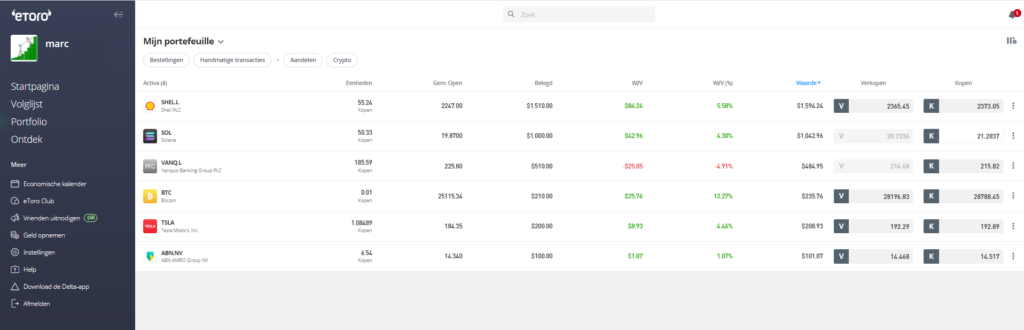 Hieronder zie je de eToro dashboard bijvoorbeeld.