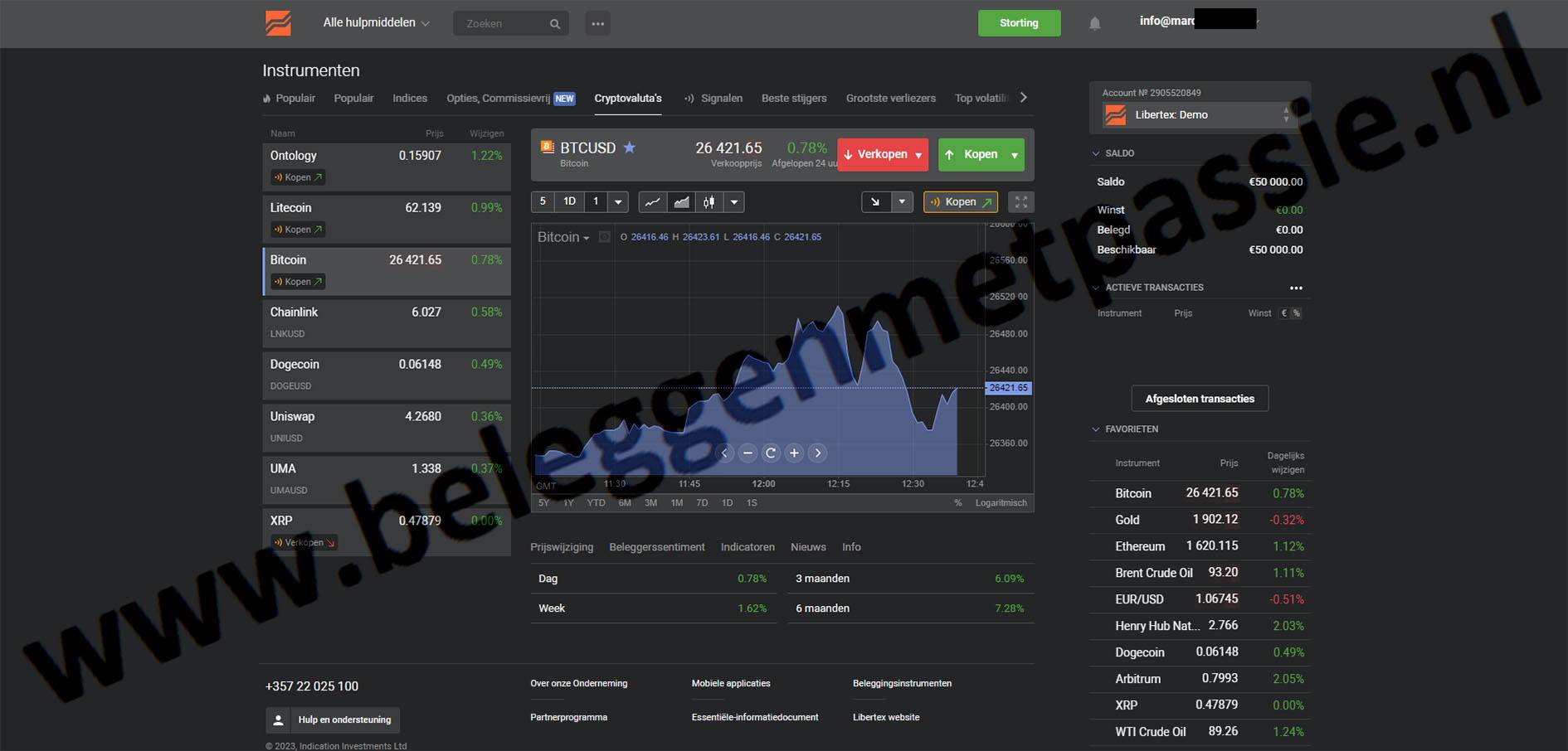 Met het demo-account kun je in real-time handelen en alle functies en instrumenten van het Libertex-handelsplatform gebruiken. Of je nu wilt oefenen met CFD’s met aandelen, cryptocurrencies of forex, het demo-account biedt de perfecte omgeving om je handelsvaardigheden te verbeteren.