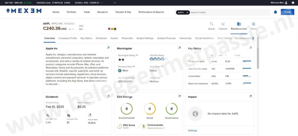 Het platform biedt ook veel tools voor het analyseren van financiële markten en het maken van slimme keuzes. MEXEM richt zich vooral op beleggers die waarde hechten aan lage kosten en brede marktoegang voor hun beleggingen in aandelen, ETF’s en andere financiële producten.