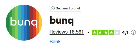 Met een 4.1 uit 16.561 reviews op trustpilot laat zien dat bunq ook een betrouwbare partij is.