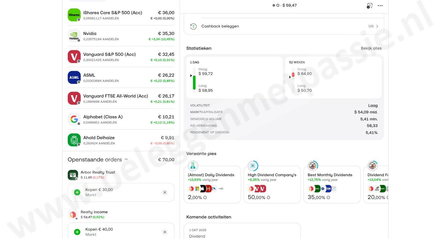Voor passieve beleggers biedt Trading212 handige tools zoals “Pies” en fractionele aandelen. Dit maakt het makkelijk om je geld te spreiden zonder veel geld uit te geven.