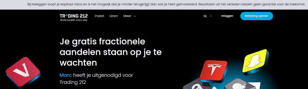 Je kunt al vanaf 1 euro beginnen met beleggen bij Trading212. Het platform biedt ook de mogelijkheid om fracties van aandelen te kopen, wat ideaal is voor beginnende beleggers met een klein budget.